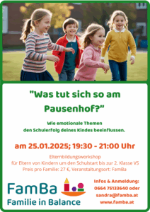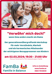 Die Workshops und auch Beratungen können bei FamBa Seekirchen, bei dir zu Hause oder teilweise auch online stattfinden.