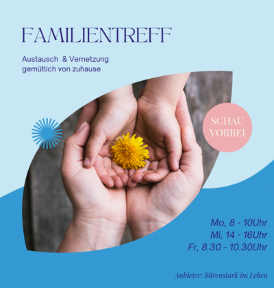 Digitale, offene Austauschgruppe für (werdende) Familien während der Zeit der Inzidenz ü 1000 bzw. in der Quarantäne Aktuell sind ja leider wieder sehr viele Angebote in Präsenz untersagt bzw. befinden sich immer mehr Familien in Quarantäne. Gerade während dieser Zeit ist es wichtig, nicht alleine zu sein, sondern im Gespräch mit anderen Familien bleiben zu können und sich über den Familienalltag auszutauschen. Bärenstark im Leben bietet deshalb 3x Woche den digitalen Familientreff an - ...